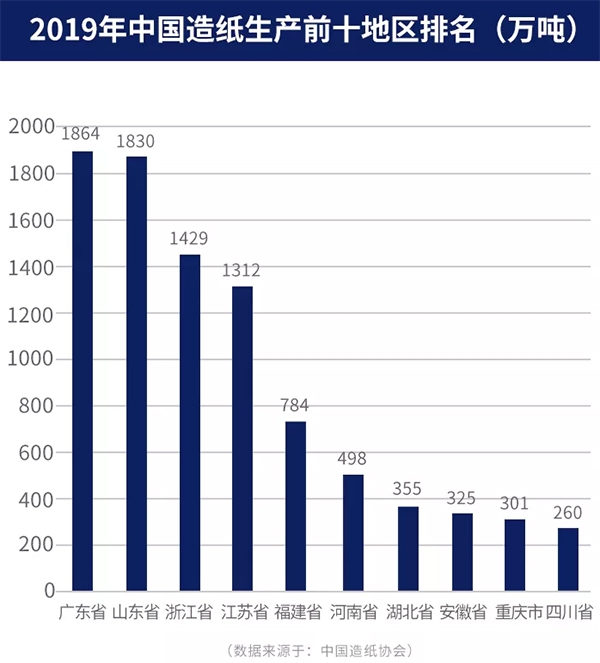 2019年中國(guó)主要造紙?zhí)盍险加新?/span>